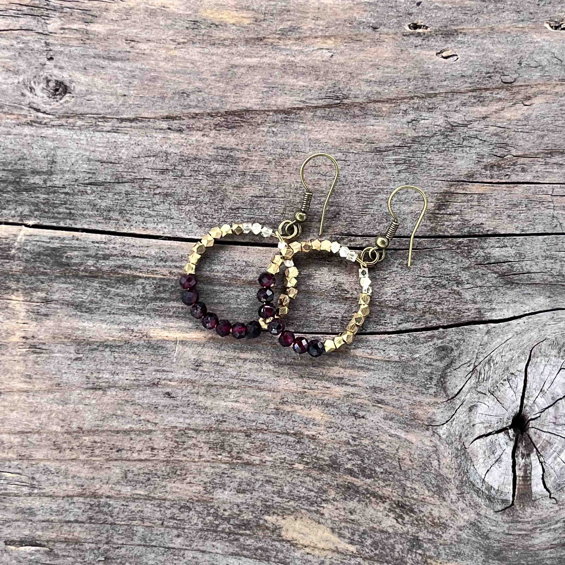 Perlene er av ekte stein, glass, messing eller bronse. Messing wire. Nikkelfrie kroker.