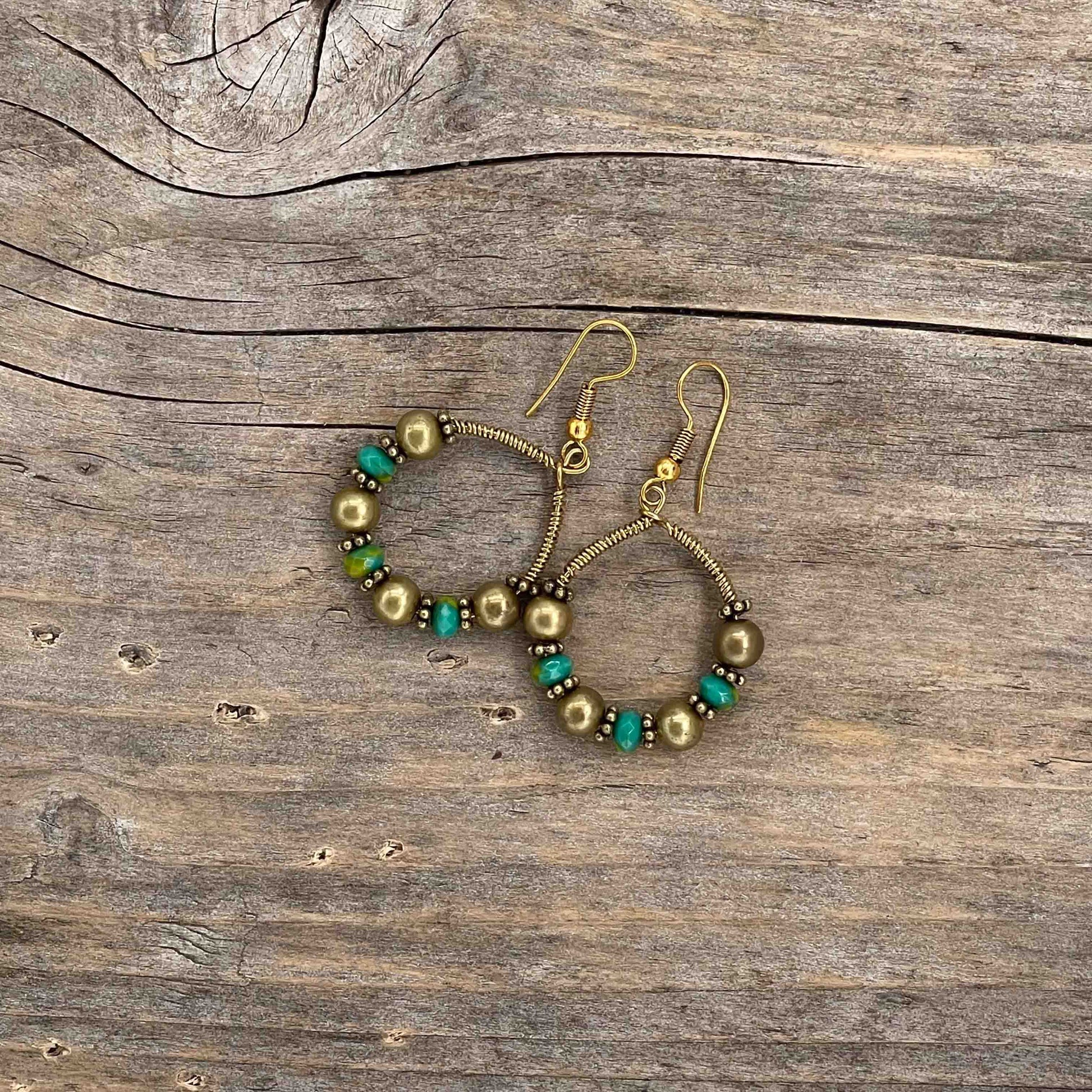 Perlene er av ekte stein, glass, messing eller bronse. Messing wire. Nikkelfrie kroker.