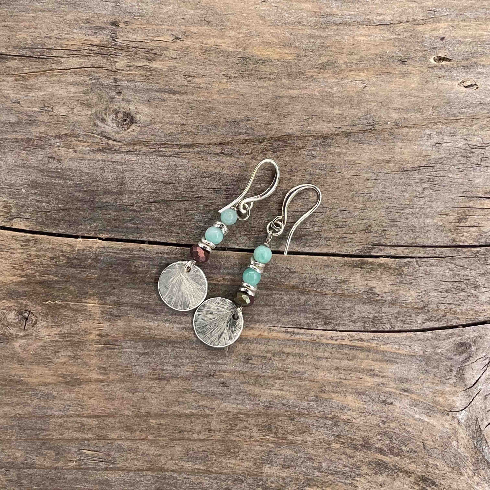 Øredobber i Sølv med Amazonitt - 50 mm - 418