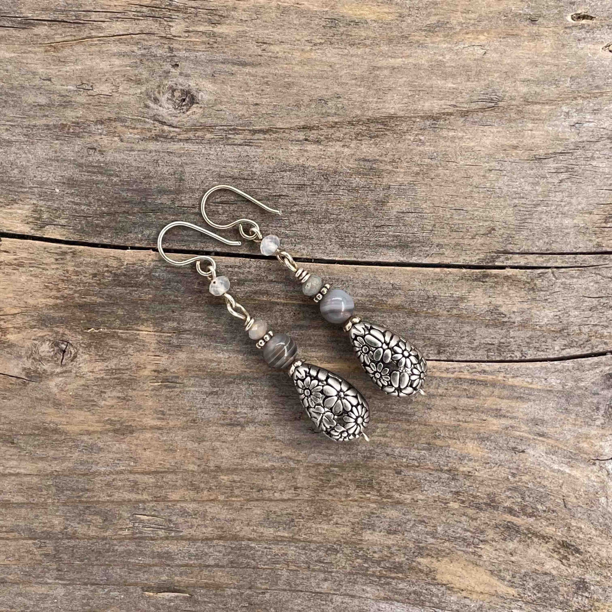 Øredobber i Sølv med Agat - 55 mm - 438