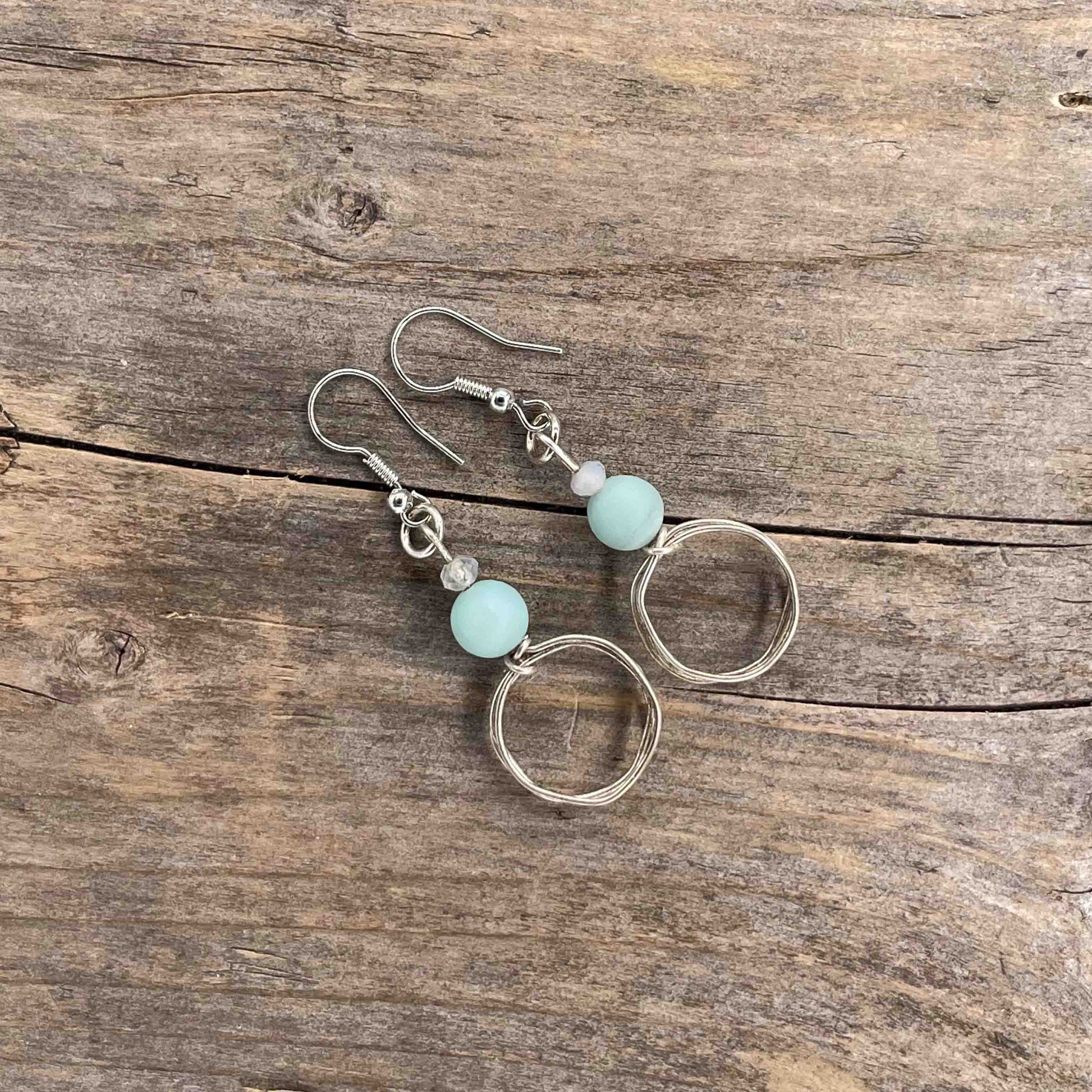 Øredobber i Sølv med Amazonitt - 55 mm - 443