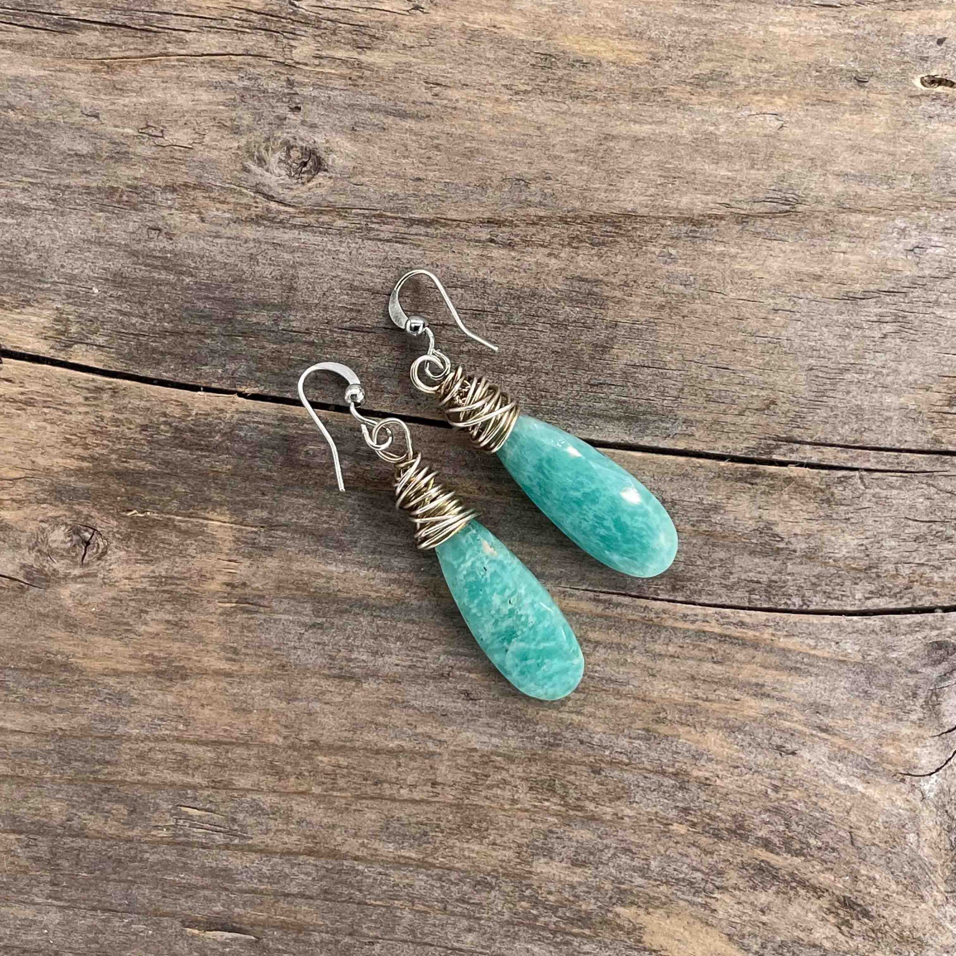 Øredobber i Sølv med Amazonitt - 55 mm - 449