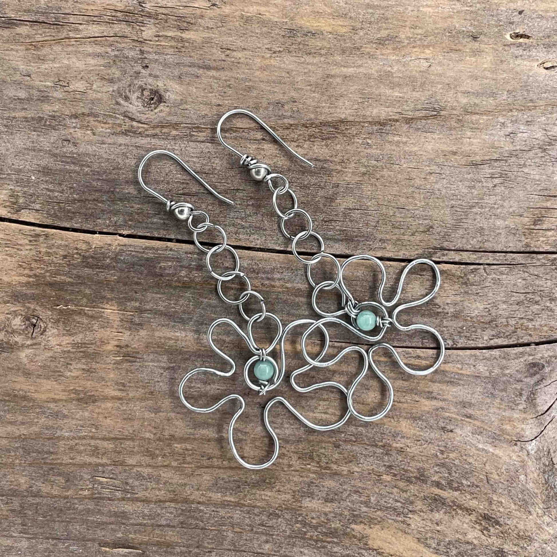 Øredobber i Sølv med Amazonitt - 70 mm - 465