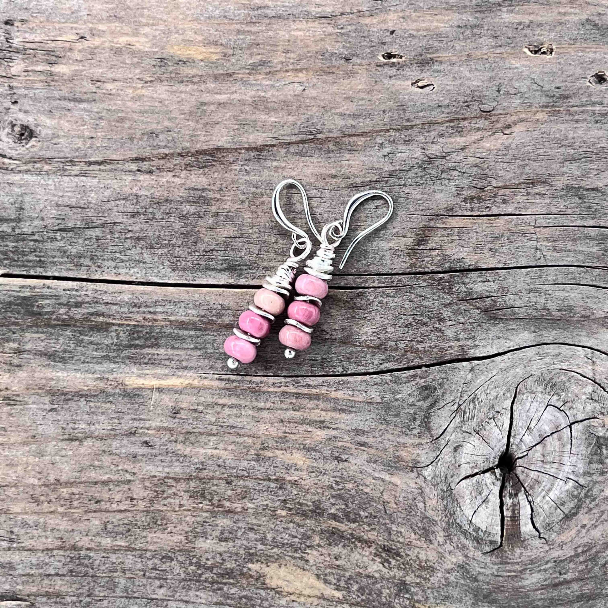 Øredobber i Sølv med Rhodonitt - 40 mm - 740
