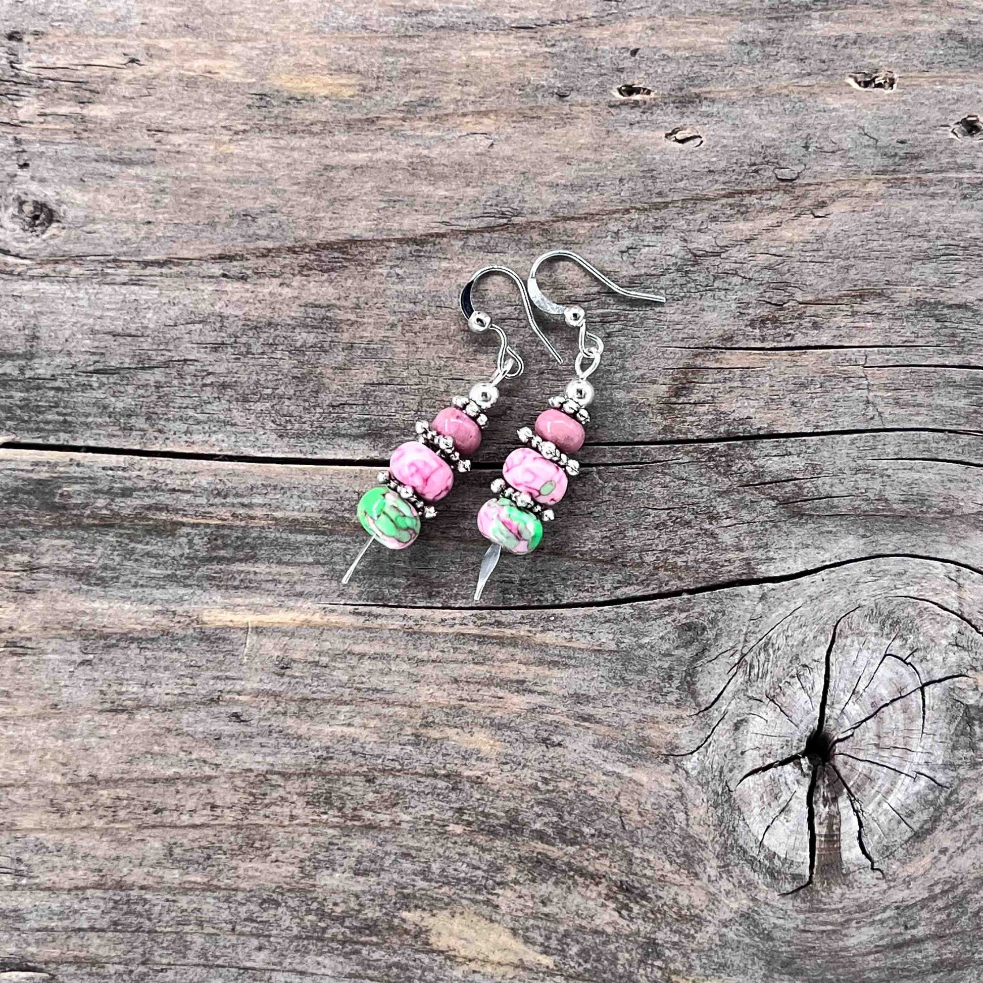 Øredobber i Sølv med Rainforest Flower stone/Rhodonitt - 50 mm - 741