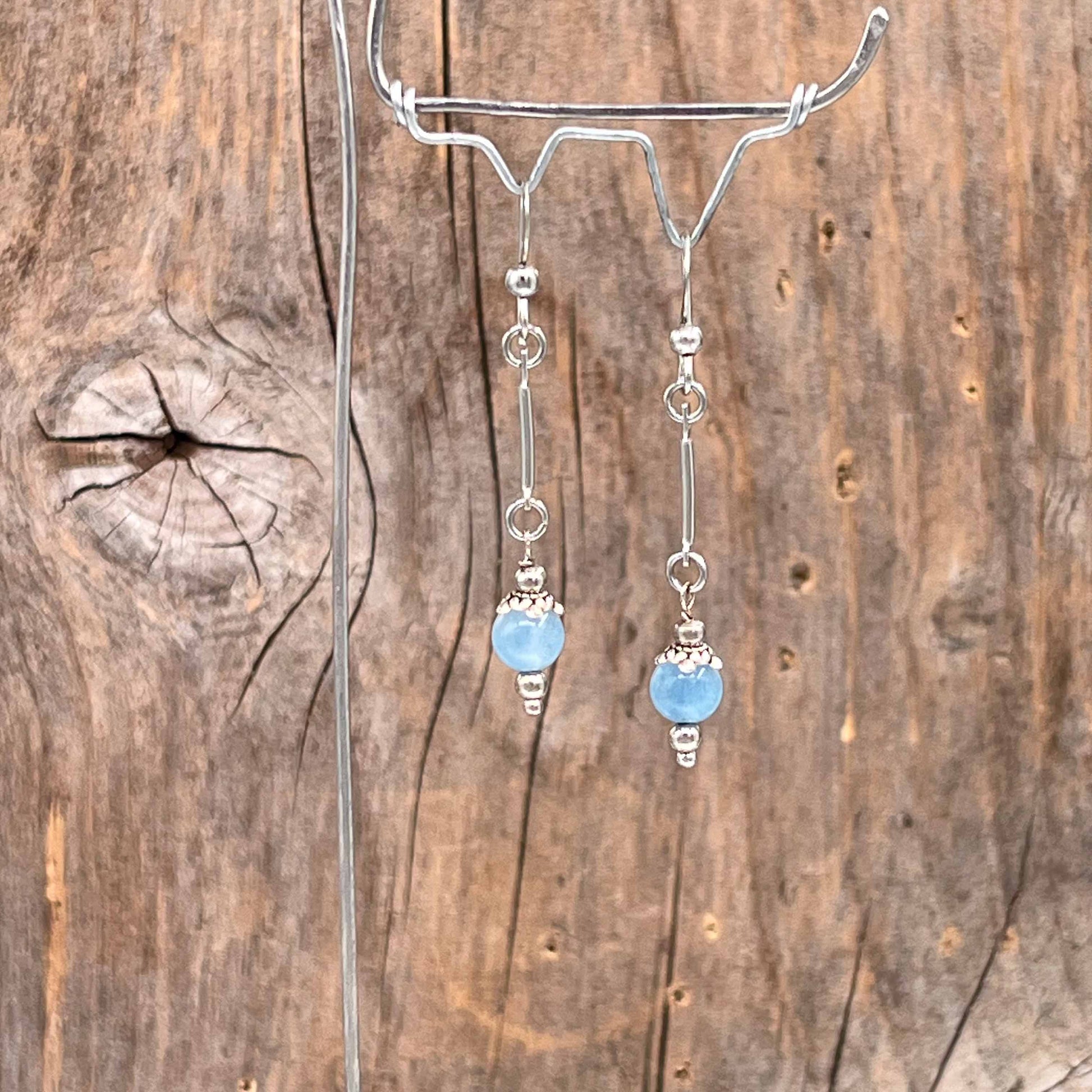Øredobber i Sølv med Jade (lyseblå) - 45 mm - 939