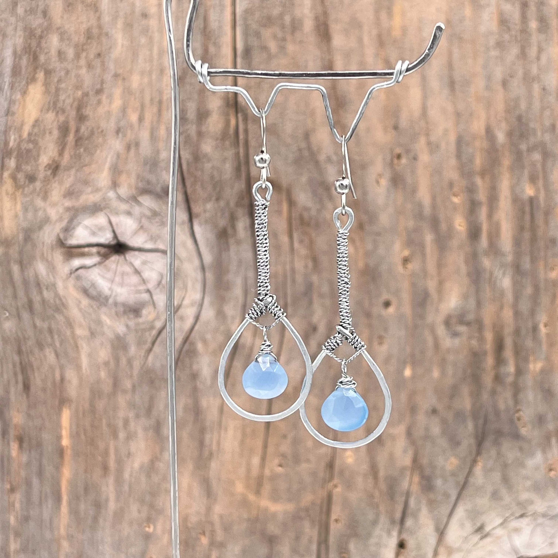 Øredobber i Sølv med Kalsedon - 55 mm - 941