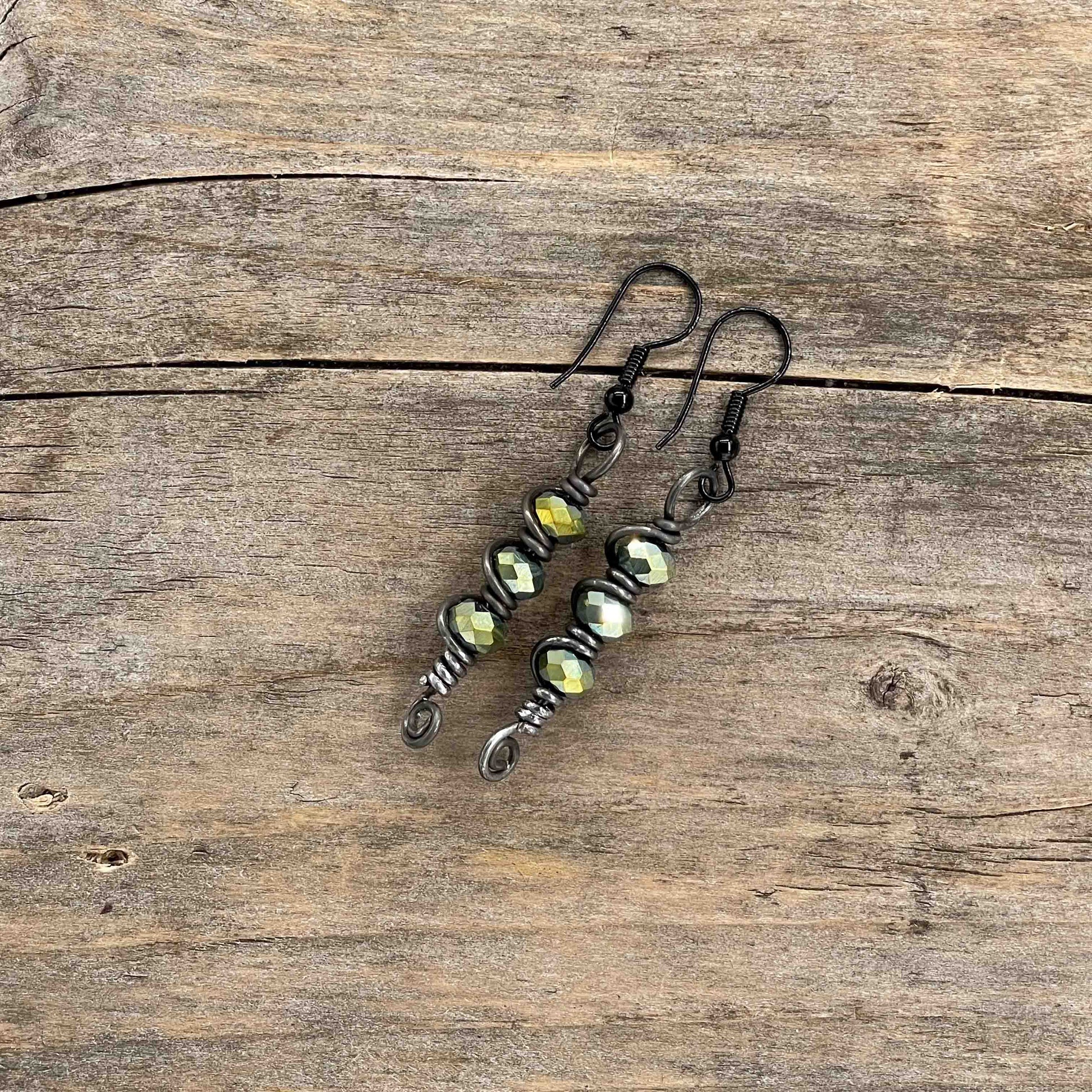Øredobber i Gunmetal med Glassperler - 55 mm - 287