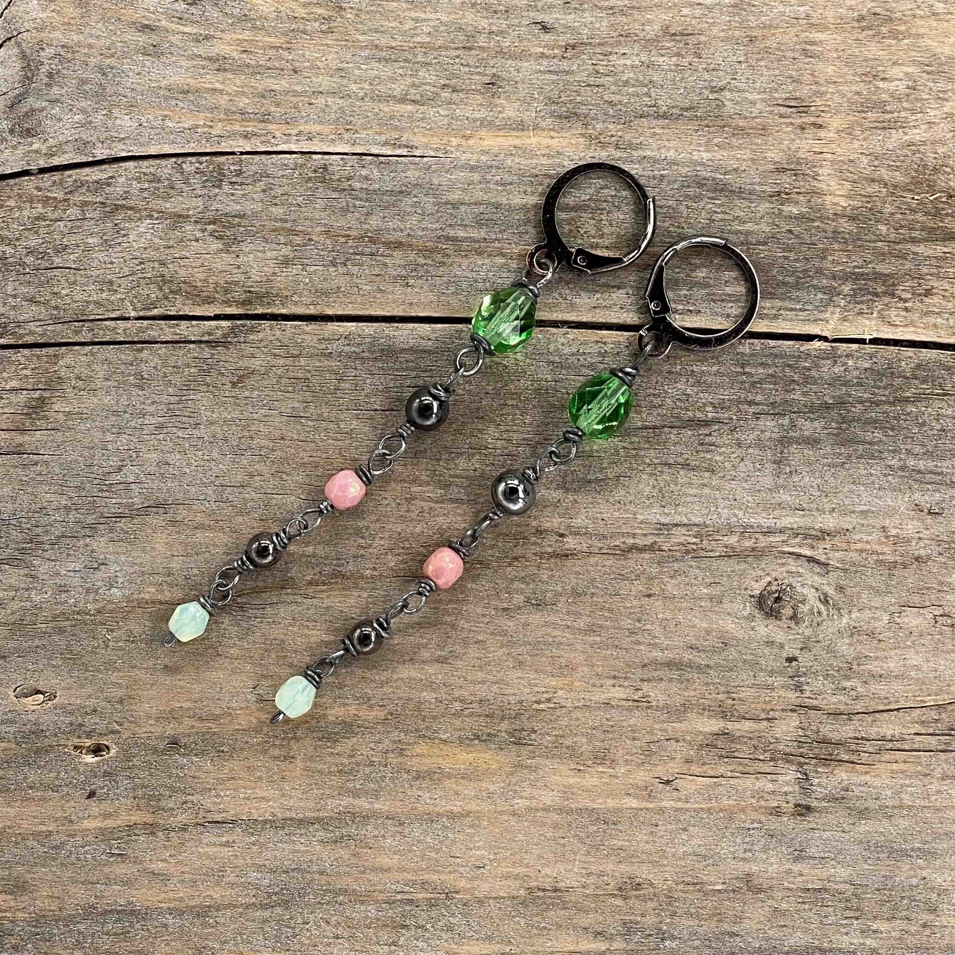 Øredobber i Gunmetal med Glassperler - 75 mm - 290