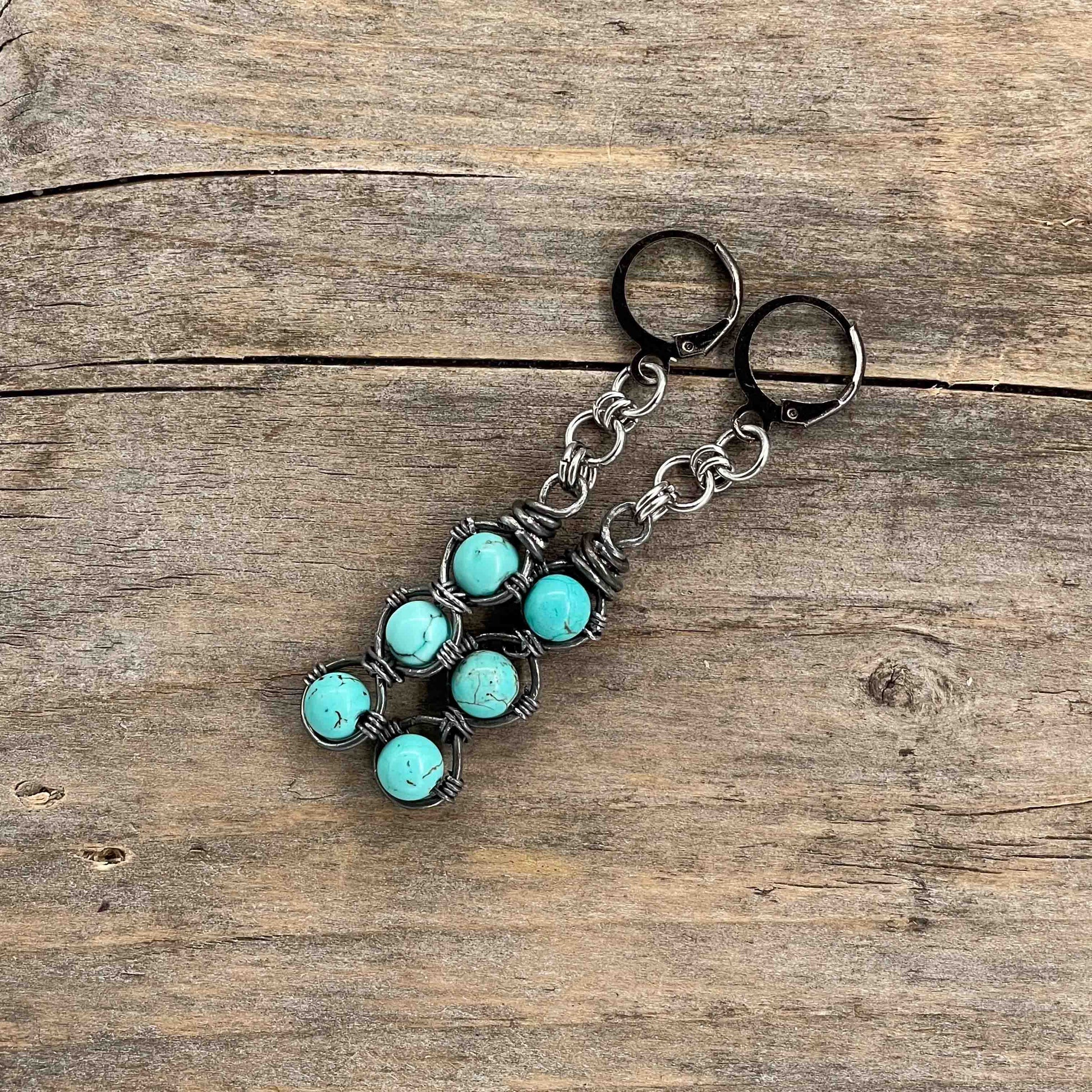 Gunmetal Øredobber med Turkis - 65 mm - 295