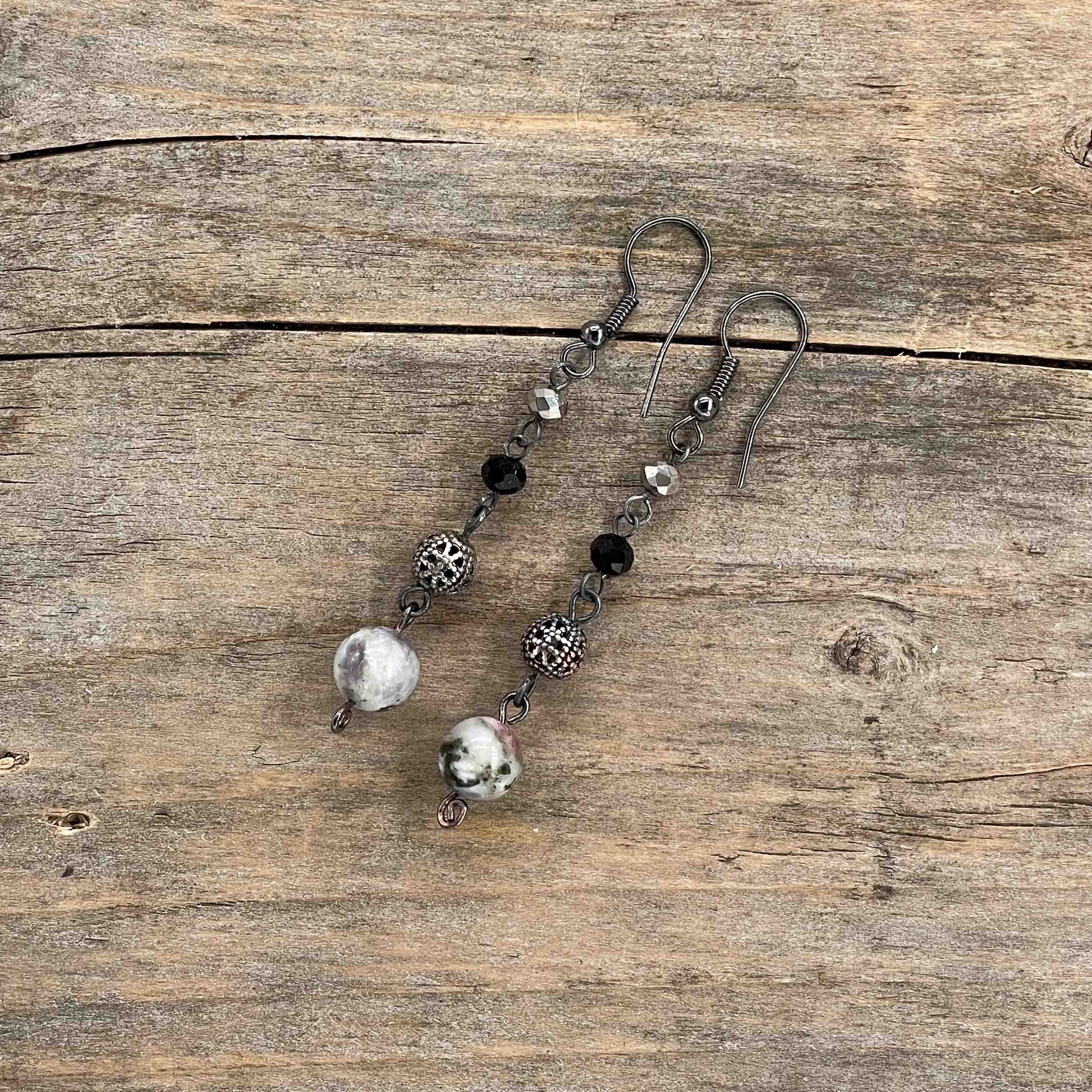 Gunmetal Øredobber med Turmalin - 60 mm - 299